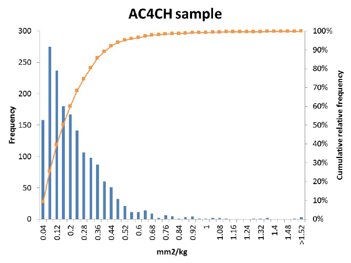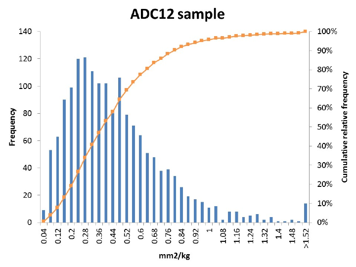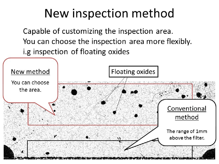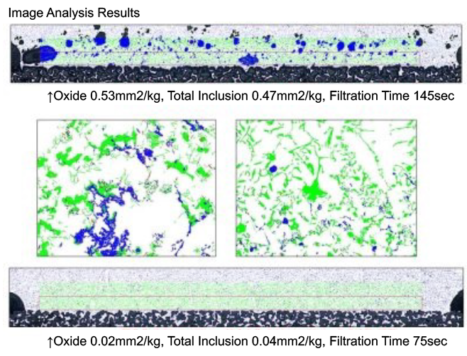 Our long-accumulated database allows you to determine the relative position of the quality of your samples within the industry. This information is useful for selecting alloy suppliers and measuring the effectiveness of degassing processes.